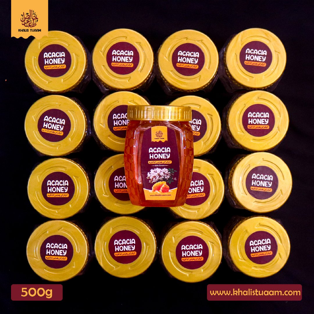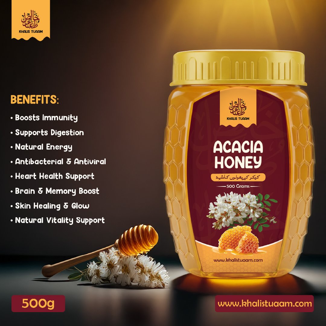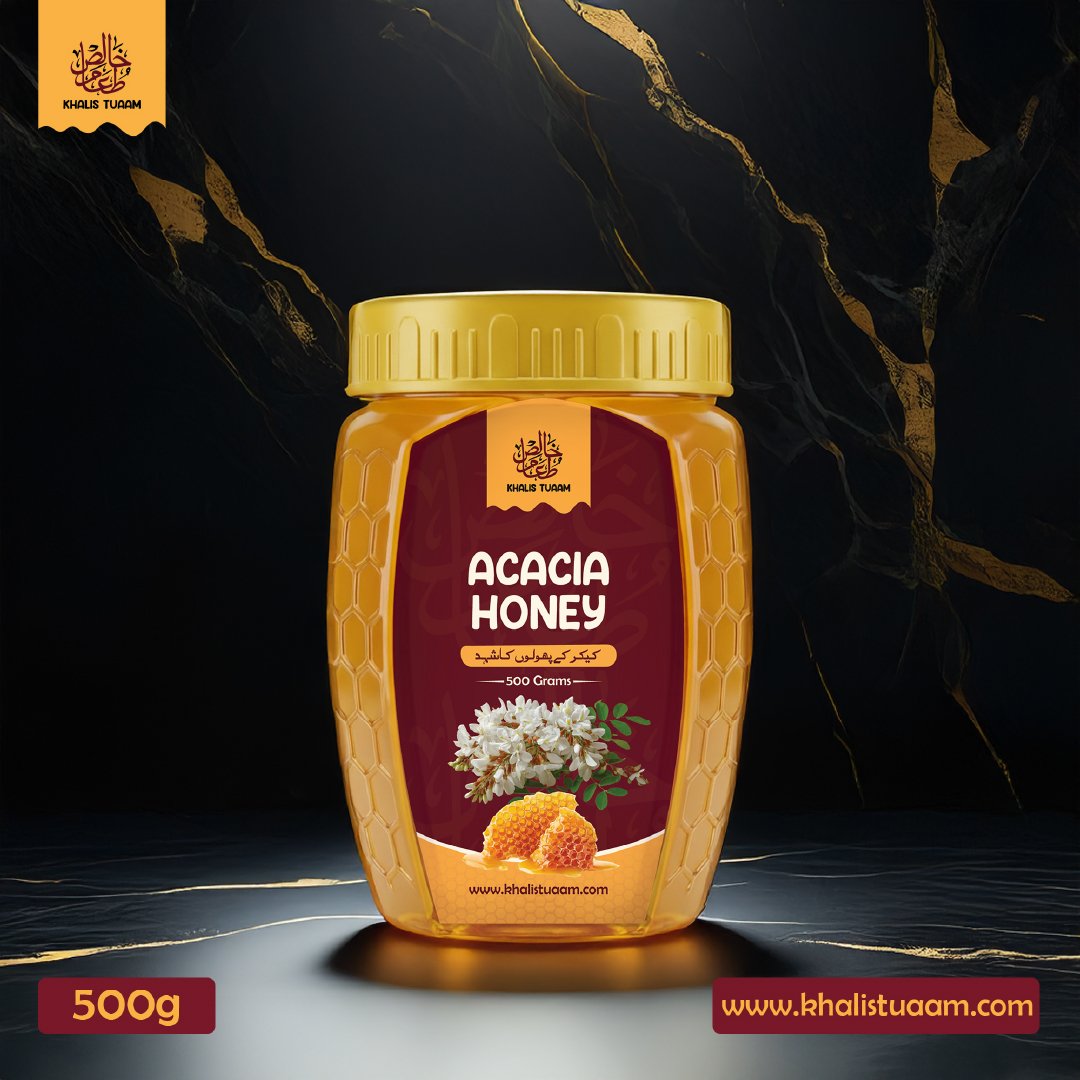 Khalis Tuaam Acacia Honey is a premium, light-colored honey harvested from Acacia tree flowers. Its transparent clarity and mild flavor make it a favorite among those who enjoy gentle sweetness without overpowering taste.