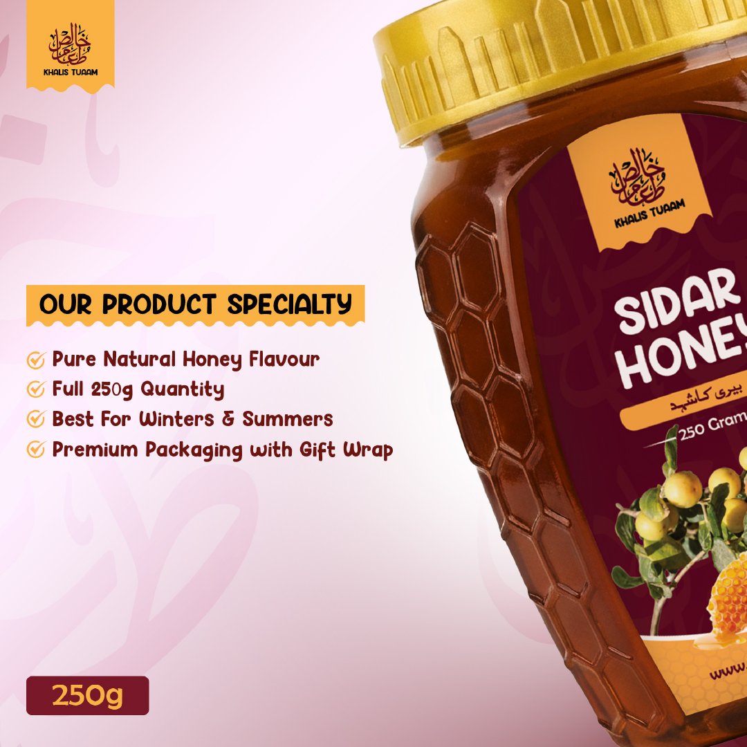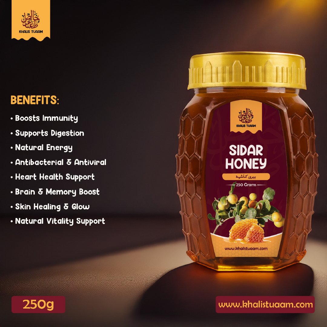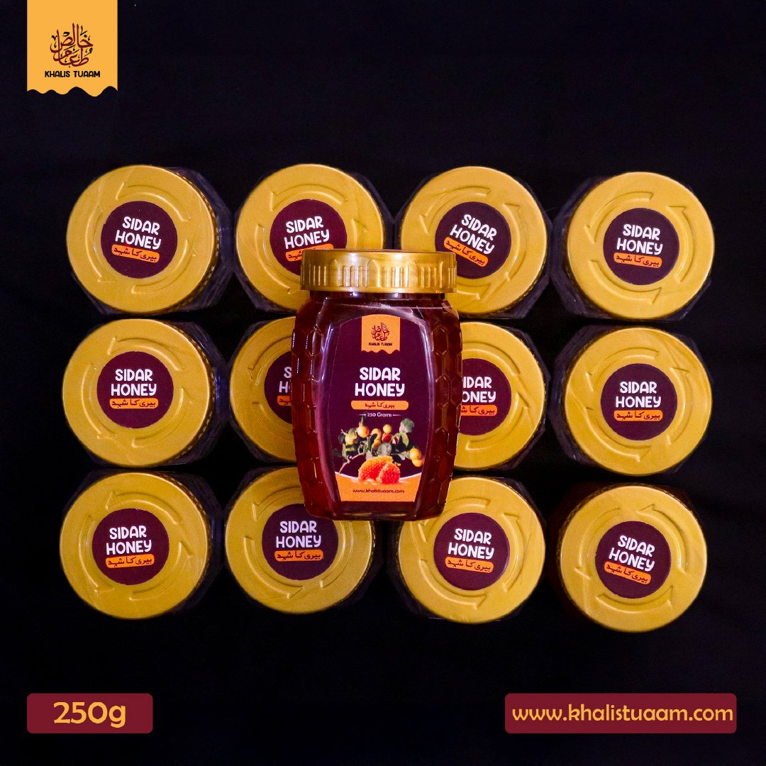 Sidar Honey, also known as Beri Honey, is a premium natural honey collected from the nectar of Sidar (Beri) tree flowers. In Pakistan, it is traditionally harvested by small local honeybees, which is why it is often called “Choti Makhi ka Shehad.”