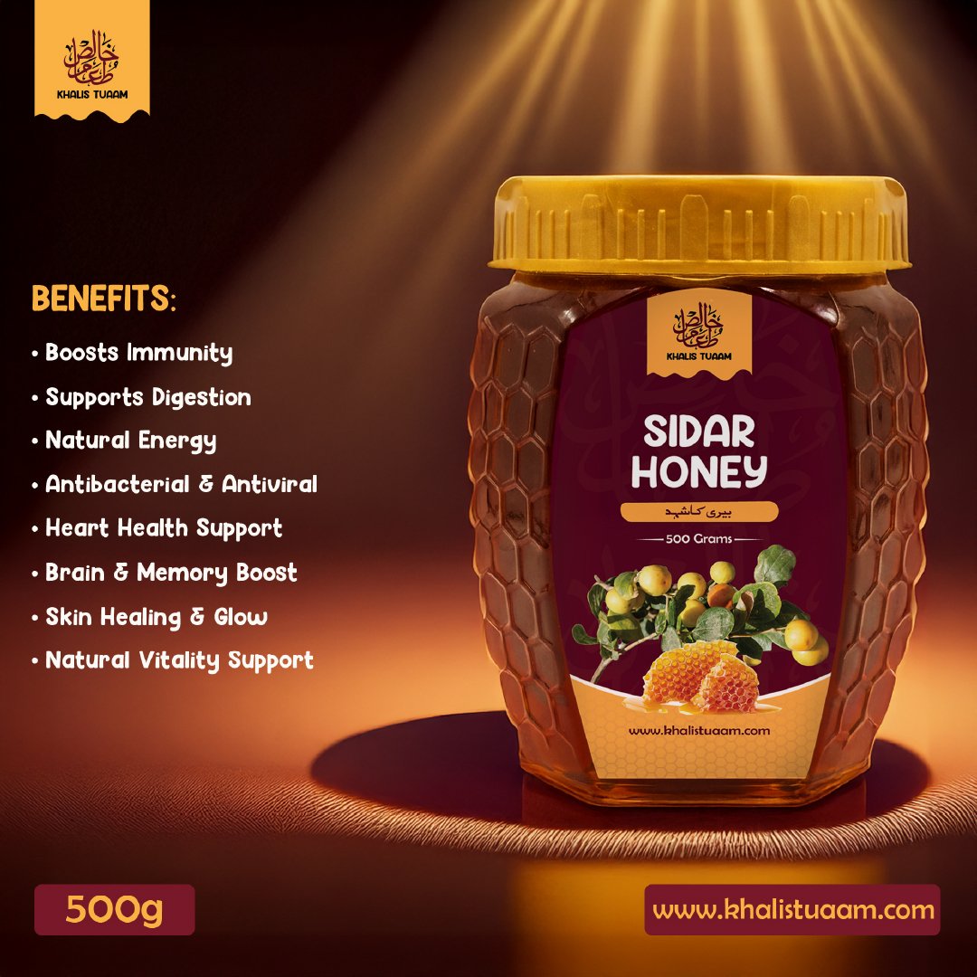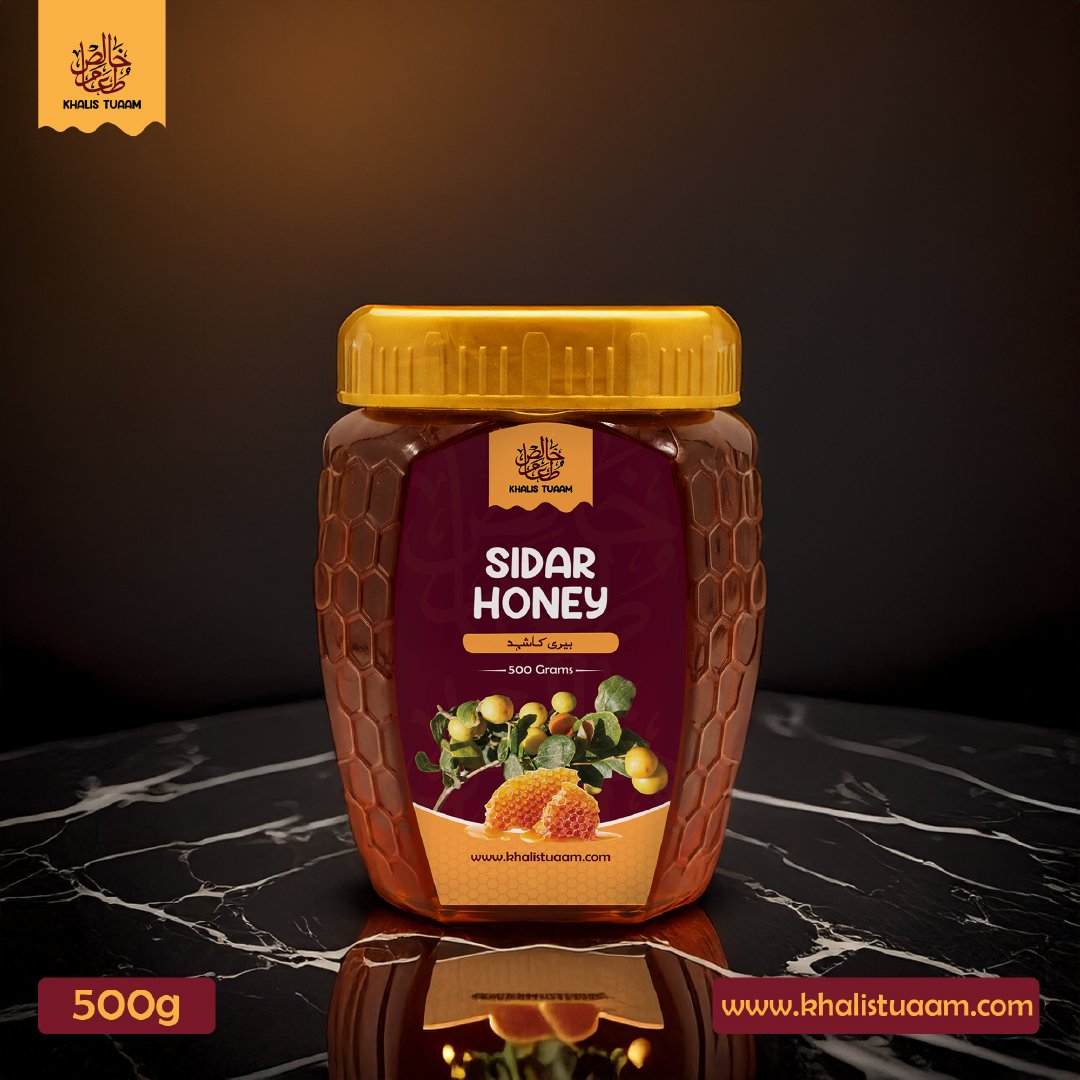 Sidar Honey is a traditional Pakistani honey obtained from the flowers of the Sidar (Beri) tree. Known locally as Beri ka Shehad, this honey is harvested by native small-sized bees, preserving its natural purity and original taste.